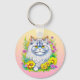 Porte - clé monogramme. Chat persan blanc mignon entouré de fleurs jaunes et roses d'aquarelle botanique aquarelle art.