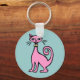 Un chat chatte de style rétro en rose, avec un collier doré en losange. Dessin original de Nicolette Amanda Berry.