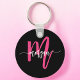 Porte-clés Chaud rose noir moderne Script Girl Monogramme Nom