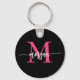 Porte-clés Chaud rose noir moderne Script Girl Monogramme Nom