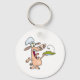Un cochon tient une assiette de nourriture. Cette conception semble vraiment efficace sur ces Porte - clés
