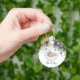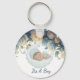 Cherished Memory Sleeping baby boy keychain peaceful sleeping baby in this charming invitation, perfect for welcoming your little prince. This design features a delicate watercolor illustration of a baby boy resting on a soft, fluffy cloud, framed by a lush arrangement of midnight blue and champagne gold roses.