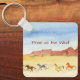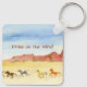 Une aquarelle d'un troupeau de chevaux sauvages orne ce porte - clé "Libre comme le Vent !" ! Customisez en changeant le texte pour vous-même !