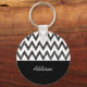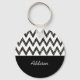 Un porte - clé noir et blanc tendance avec un motif chevron de crayon dessiné à la main et un design. Personnalisez ce design moderne et chic en zigzag noir et blanc en ajoutant votre nom.