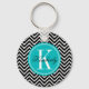 Porte-clés Chevron noir et blanc avec Monogramme Turquoise