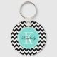Porte-clés Chevron noir et blanc avec Monogramme Turquoise