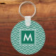 Porte - clé simple motif chevron vert et blanc moderne. Rendez-le personnel en ajoutant votre initiale au carré monogrammé.