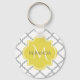 Porte-clés Chic Blanc Gris Quatrefoil Jaune Nom Monogramme