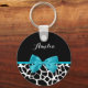 Un porte - clé design en girafe noir et blanc avec un ruban bleu aqua branché attaché dans un arc girly. Personnalisez ce dessin animal mignon en ajoutant votre nom. Image imprimée plate, pas l'arc réel.