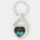 Un porte - clé en forme de coeur imprimé de girafe noir et blanc, avec un ruban bleu aqua branché attaché dans un arc girly. Personnalisez ce dessin animal mignon en ajoutant votre nom. Image imprimée plate, pas l'arc réel.