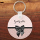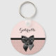 Un porte - clé chic, rose et noir, avec un ruban noir ceinturé attaché à un joli arc. Personnalisez ce design féminin d'inspiration française rose pâle en ajoutant votre nom. Image imprimée plate, pas l'arc réel.