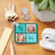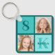 Chic 2 photo square keychain for a trendy girl's birthday. Celebrate your child's birthday with two beautiful photographs of them on this add your own photograph gift with turquoise squares. Add your kid's name and age.