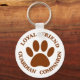 Un empreinte de patte de chien avec un effet de détresse. Texte et dessin en marron. Un design pour les gens qui aiment les chiens.