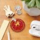 This button keychain design specifically for the year of the dog (those born in 1934, 1946, 1958, 1970, 1982, 1994, 2006, 2018) is created in traditional red and gold and features a gold foil dog on a colorful fireworks background adorned with the Chinese character for 'year of the dog' and an elegant geometric border. Makes a unique New Year's or birthday gift. Search ID542 to see other zodiac symbols and additional products with this design.
