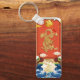 Beau papier de dragon doré chinois découpé en panneau rouge + idéogramme de Fu doré avec d'autres dragons et motif de décoration chinois + or "Année du Dragon" (écriture manuscrite originale). Conception sur porte - clé rectangulaire avec monogramme pour customiser à l'arrière. Parfait pour le Nouvel An chinois du Dragon ou anniversaire (personnes nées dans l'Année du Dragon).