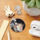 Chloe lèche ses côtelettes après avoir volé un verre du verre de sa maman.
