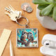 Porte-clés Chouette bleu Kawaii Chibi sur une branche d'arbre