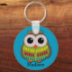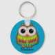 Chouette mignonne et colorée sur un porte - clé bleu personnalisé. Ajoutez votre texte.