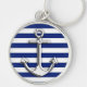 Un chrome argenté nautique comme le décor graphique de conception d'ancre sur les rayures bleues. Un cadeau nautique moderne sure pour faire une impression dessus, ou outre du bateau.
