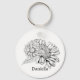 Porte-clés Chrysanthemum Black Line Drawing with Your Name