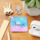 Porte - clé personnalisé avec un arrière - plan fantaisiste. Couleur pastel rose et bleu dégradé. De petites étoiles blanches parsèment le paysage. Design fantasque et magique.