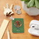 Le badge de la crête du coq Clan Currie entouré d'une sangle et survolez l'arrière - plan tartan. Texte personnalisé des deux côtés.