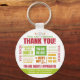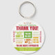 La manière parfaite de montrer votre appréciation et merci. Ce porte - clé élégant présente plusieurs variantes d'un message de remerciement en typographie rouge, verte et orange. Cela ferait un grand cadeau de toiletteur - ou une façon de remercier enseignant ou médecin.