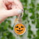 Porte - clé pour Halloween avec Jack-o'-lantern visage avec des cils. Personnaliser avec nom ou expression.