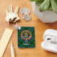 Clan Davidson crête badge entouré d'une sangle et boucle sur l'arrière - plan tartan. Texte personnalisé des deux côtés.