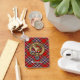 Clan MacFarlane écusson de crête entourée d'une sangle et boucle sur l'arrière - plan tartan rouge. Texte personnalisé des deux côtés.