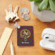 Clan MacGowan crête badge entouré d'une sangle et boucle sur l'arrière - plan tartan. Texte personnalisé des deux côtés.