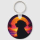 Porte-clés cockapoo coucher de soleil rétro représentant une belle silhouette de cockapoo sur un coucher de soleil vibrant de plage. Ce design est parfait pour les propriétaires de cockapoos, les mamans et les papas de cockapoos et les amoureux des chiens qui adorent cette race joueuse et affectueuse.