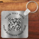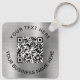 Porte - clé promotionnel simple pour votre entreprise ou organisation avec un faux arrière - plan métallique en argent brossé. Ajoutez votre code ou logo QR et deux lignes de texte customisé, comme le nom de votre entreprise, le slogan, merci ou laissez vide.