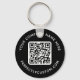 Arrondi, porte - clé noir avec votre code QR et texte personnalisé. Modifiez les polices et les couleurs, déplacez et redimensionnez les éléments à l'aide de l'outil de conception.