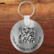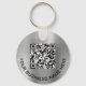 Porte - clé promotionnel moderne et simple pour votre entreprise ou organisation avec un faux arrière - plan métallique en argent brossé. Ajoutez votre code ou logo QR et deux lignes de texte customisé, comme votre nom d'entreprise, votre slogan, merci, etc.
