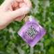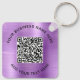 Élégant porte - clé promotionnel pour votre entreprise ou organisation avec un arrière - plan métallique en faux violet brossé. Ajoutez votre code ou logo QR et deux lignes de texte, comme le nom de votre entreprise, le slogan, merci ou laissez vide.