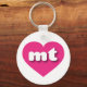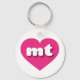 Ce porte - clé est doté d'un coeur rose chaud et vibrant contenant les courageux, arrondis, blancs en lettres coques inférieures mt, une abréviation ludique pour le Montana, l'état trésor.