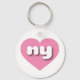 Ce porte - clé est doté d'un coeur rose vif contenant les lettres coques inférieures arrondies, blanches et audacieuses, une abréviation ludique pour New York, l'état de l'empire.