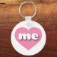 Ce porte - clé est doté d'un coeur rose vif contenant les lettres coques inférieures arrondies et blanches, une abréviation ludique pour Maine, l'état des pins.