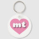 Ce porte - clé est doté d'un coeur rose vif contenant les lettres coques inférieures arrondies, blanches et audacieuses mt, une abréviation ludique pour le Montana, l'état trésor.
