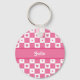 Un joli porte - clé motif vérificateur carré rose et blanc avec un joli motif de coeur rose. Personnalisez ce design élégant pour filles ados avec adorable style champêtre rose en vichy coeurs damier en ajoutant votre nom.