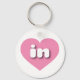 Ce porte - clé est doté d'un coeur rose vif contenant des lettres coques inférieures arrondies et blanches, une abréviation ludique pour Indiana, l'état Hoosier.