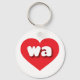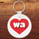 Ce porte - clé est doté d'un coeur rouge vif contenant des lettres coques inférieures arrondies et audacieuses, blanches, une abréviation ludique pour Washington, l'état à feuillage persistant.
