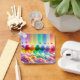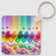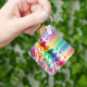 Ce porte - clé a un design de coeur arc-en-ciel dessus.