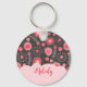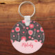 Porte-clés Coeurs gris-blanc et fleurs nom floral