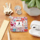 Porte - clé personnalisé avec un motif fantaisiste. Doodles et gribouillis style Scrapbook. Coeurs rouges et roses et diverses lettres et enveloppes éparpillées partout.