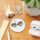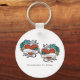 Créez une fête de mariage personnalisée ou un petit cadeau avec ce porte - clé. Il présente des graphiques de style tatouage avec des coeurs de style rétro en rouge avec des accents de fleurs bleues qui sont prêts à être personnalisés avec le nom de la mariée et du marié.