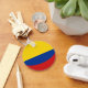 Le drapeau de la Colombie a été correctement installé sur la plaque circulaire de ce porte - clé. Un rappel pratique du patrimoine colombien.
