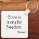 From the painting Carnaval, this vibrant keychain features an abstract multicolored face in pixel art. The quote on the back, "Color is a cry for freedom.", celebrates bold self-expression and artistic freedom. A bright statement piece to carry with you.