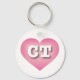 Ce porte - clé est doté d'un coeur rose cool et calme, d'un centre blanchi à la chaux et contenant les lettres coques supérieures en gras et blanches CT, l'abréviation officielle du Connecticut, l'état de la constitution.